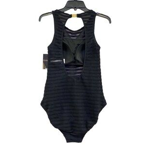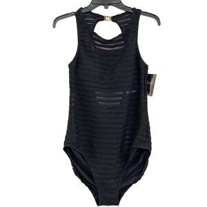Lauren Ralph Sz 8 Lauren Swimsuit Ottoman Mesh High Neck One-Piece Black New