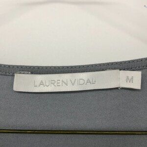 Lauren Vidal blue grey short sleeve viscose Chained V-neck blouse Med