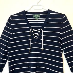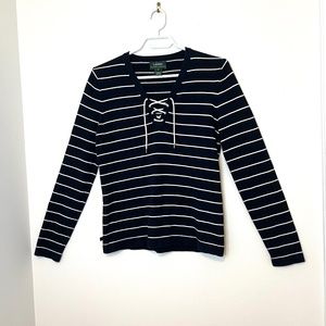 Lauren by Ralph Lauren Navy Striped Sweater Lace Tie Up Size S
