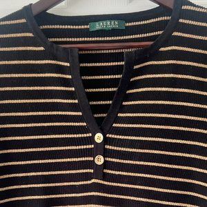 Lauren by Ralph Lauren Women's Black with Gold Stripes Sweater!