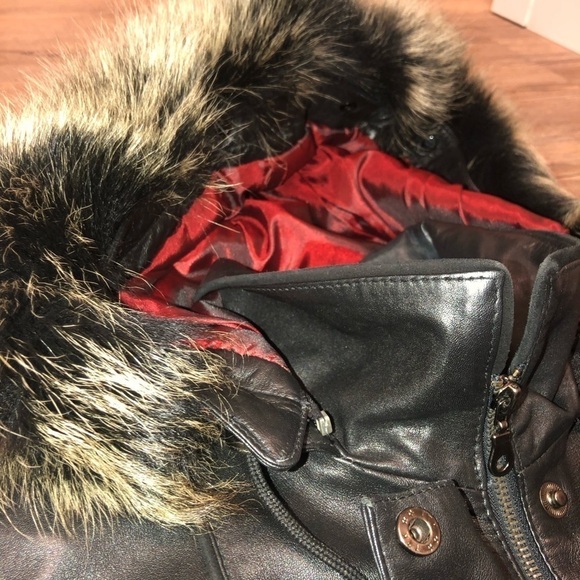 Laurence Roy Lambskin Butter Leather Jacket w Removable Fur Trim Hood Sz S Vtg