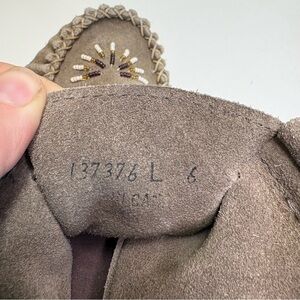 Laurentian Chief Apache Narrow Fringe Beaded Moccasin Grey Suede Made In Canada