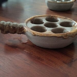 Beautiful set of four Laurentian Pottery escargot dishes. Perfect for serving gourmet meals. Great condition.
