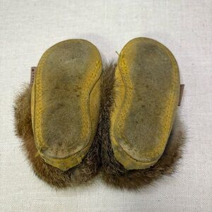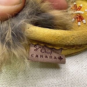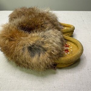 Laurentien Chief Infant Baby Moccasin Slippers Tan Beaded Fur Lined Cute Tiny