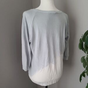 Super cute, soft, light knit sweater. Pretty blue color with white on the bottom. Perfect for spring. Lightly worn, euc.
