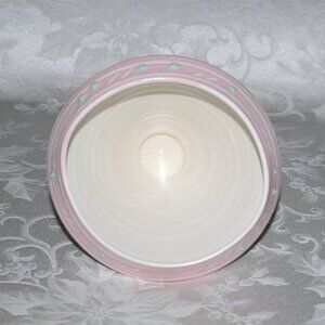 "The piece you have is probably from the eighties when I was using a lot of colour in my work. To achieve the pink and green I have used coloured slips made with commercial stains and applied them by brush and a slip trailer.
