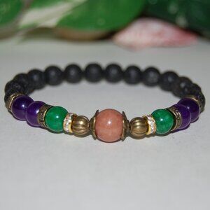 Lava Bracelet,Good Luck Bracelet,Multi Color Stone Beads,Jade and Lava Bracelet