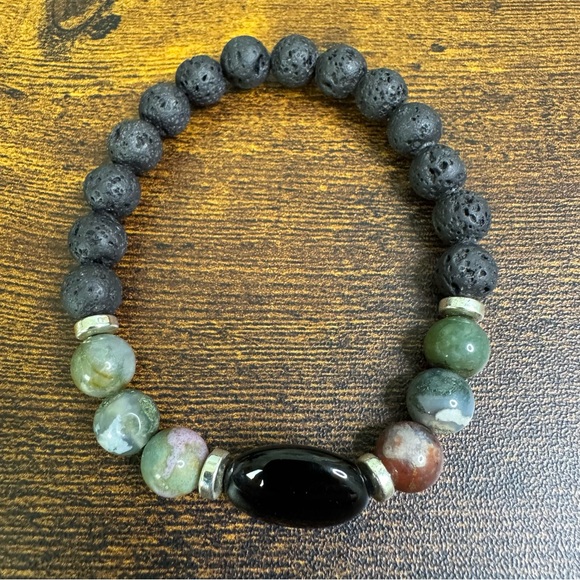 Lava stone (good for essential oil diffusing), healing bracelet. Unisex design.