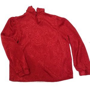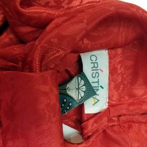 Produced by Cristina in the 1990's, this lavallière (pussy bow) blouse is constructed in a damask santa fe pottery pink and is in perfect condition.