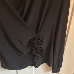 Lavena Black Faux Wrap Top with Rosettes & Long Sleeves, size S