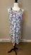 Excellent condition. Mid length. Sleeveless. Navy blue base with white leaf & floral tropical print. Polyester/ spandex blend. Side hidden zipper. Gathered / front pleats on chest.