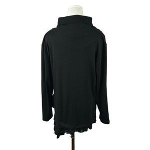 Lavena Tunic Top Women Large Black Asymetric Shirt Blouse Buckle Eyelet Trim