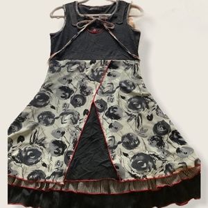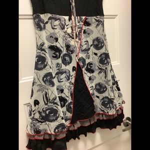 Black crinkled look with a pretty black and gray and cream overlay ,trimmed in red ,