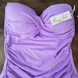 Lavender Amethyst Purple Anne Cole one piece strapless halter swimsuit