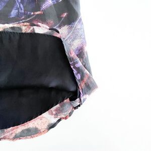 Lavender Brown 100% Silk Spaghetti Strap Racer Back Tank Top Black Abstract M