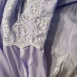 Experience elegance and comfort with this lavender lace nightgown. Perfect for a relaxing evening. Bottom is sheer and maxi length, flattering chest area and the way the maxi drapes over the curves