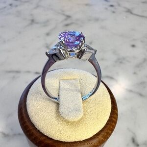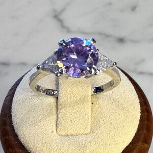 Lavender brilliant cut cubic zirconia with 2 clear CZ marked 925 RSC silver ring