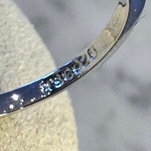 This gorgeous brilliant cut lavender cubic zirconia is flanked with 2 trilliant cut clear cubic zirconia stones and is marked 925 RSC.