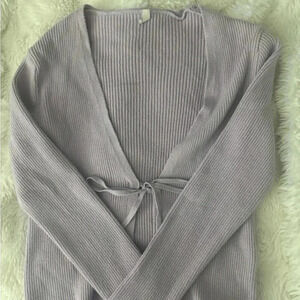 Lavender long sleeve cardigan with bow tie in the front from Turkey