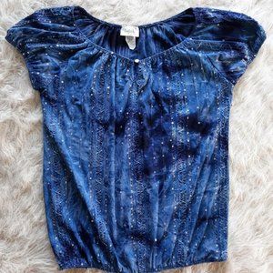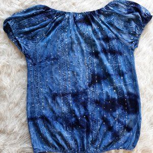 Lavish Women's Blue Tie Dye with Shimmer Sequin Scoop Neck Top Size: S