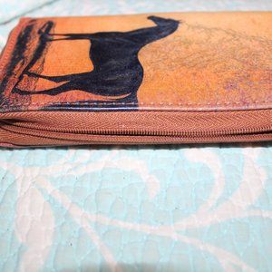 Lavishy Eco Friendly Faux Leather Vegan Zippered Wallet Wristlet Horse Ferns NWT