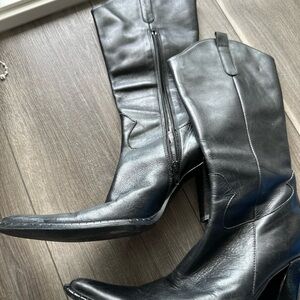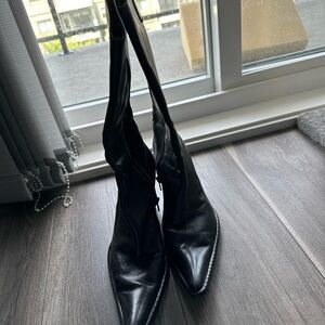 Step out in style with these sleek black leather boots. Perfect for any occasion, these boots offer both comfort and elegance.
