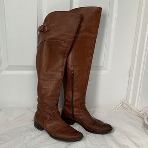 These over-the-knee boots are very comfortable, very boho, and in good, clean condition. They are a bit weathered looking, especially around the toes, due to wear, but it gives them a bit of a distressed look, and the leather is still in good condition. Please check out the photos.