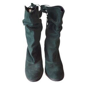 Lavorazione Artigiana Hand Made Green Suede Boho Heeled Slouch Boots Size Eu 40