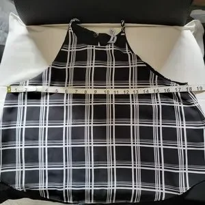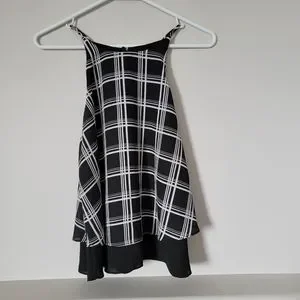 Design Lab spaghetti strap top. 100% polyster. 2 layers. Loved to wear this out, very flowy.