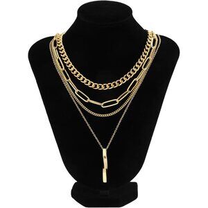 Layered Gold Necklace for Women Chunky Bar Pendant Paperclip Chain Jewelry Gift