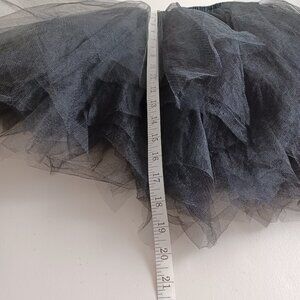 A tutu skirt in black. Draped with handkerchief-cut tulle overlay for volume and movement. Light weight with double under-skirt lining. Perfect for all seasons with appropriate layering. Like new, excellent condition.