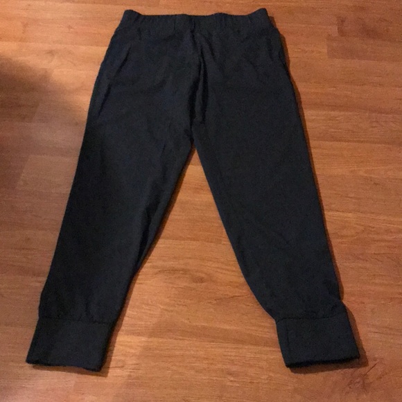 Size medium. Quick dry pant . Polyester spandex . Awesome to wick away moisture and look stylish. Elastic waist and cuff bottom. Side pockets. Smoke free home