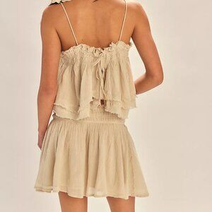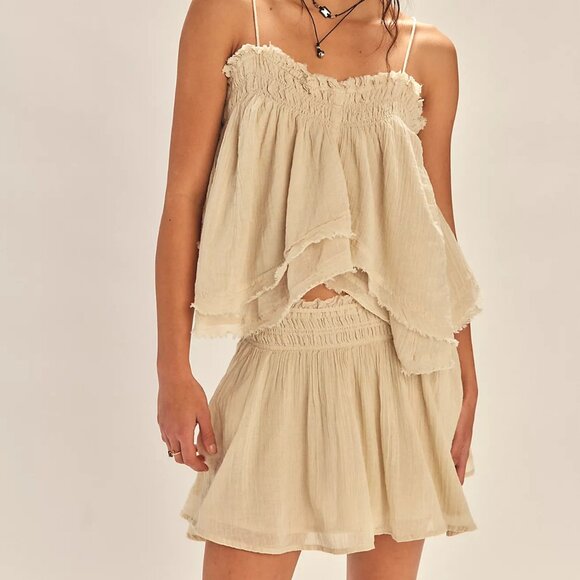 Slip into this dreamy duo from free-est, featuring a flowy tank and fluttery skirt with flattering smocking and raw edges for a rugged touch. Color is Summer Sand. size M.