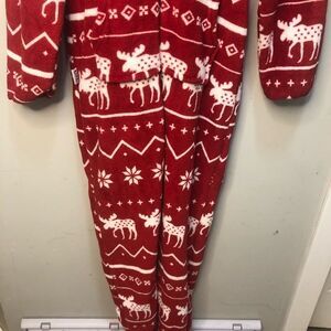 Made from thick, soft polar fleece, Hoodeez have a comfy hood, a roomy front pocket, and fuzzy footies with a non-skid sole. Nordic Moose! 100% Polyester.