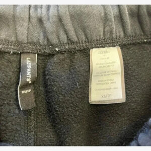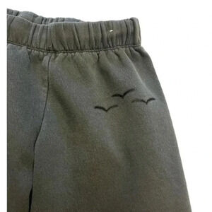 Ladies black lazypants sweat/ comfy pants, with bird print of left front, gathered waist with draw string, gathered elastic ankles.