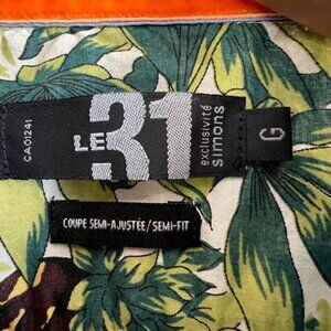 Le 31 Men’s Large Green Floral Hawaiian Camp Long Sleeve Button Down Shirt
