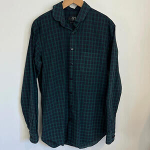 Le 31 Simons Men’s Large Green Blue Plaid Long Sleeve Casual Button Down Shirt