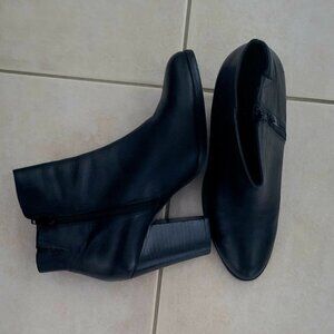 Women's Solid Color Chunky Heel Ankle Boots, Pointed Toe. Versatile style, easy pull-on design with side zipper at the ankle for easy on and off. Can be worn for a dressy occasion as well as a casual event
