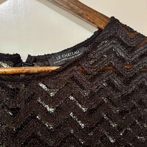 Le Chateau black lace blouse with chevron design. Ideal for chic layering. Size medium, In good pre-owned condition, laundered and ready to wear.