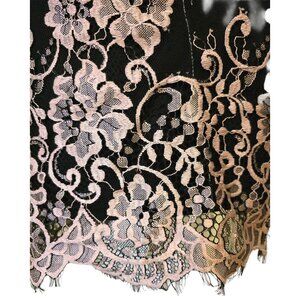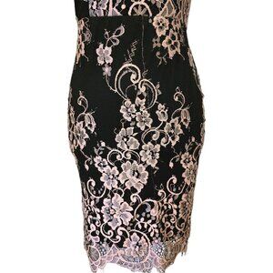 Le Chateau Black Pink Lace Midi Dress Bodycon Party Elegant Cutout Floral Sz XS