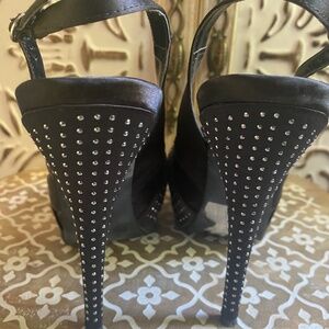 Le Chateau Black Satin Knot with silver stud detail, Size 8