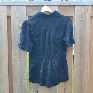 Le Chateau Black Silk Button Up Shirt Women's Size Large