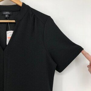 Le Chateau Black V-Neck Shift mini Dress Chest Pocket NWT women’s Small LBD