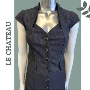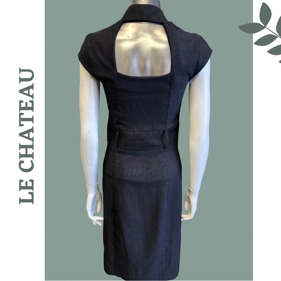 Le Chateau Black White Pinstripe Button Front Dress Cap Sleeve Open Back Size XS