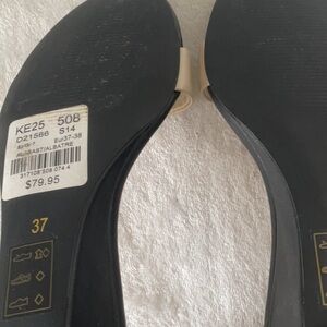 Elevate your style with these sophisticated Le Chateau wedges, featuring a striking black and cream color palette. The elegant design includes a comfortable wedge heel and a sleek ankle strap for a secure fit. Perfect for both formal and casual occasions, these shoes offer a timeless appeal.