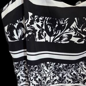 This elegant camisole from Le Chateau features a striking black and white pattern with ornate designs. The sleeveless top is fitted, offering a flattering silhouette with its sweetheart neckline. Perfect for adding a touch of sophistication to any outfit. Length 23" Width 18"