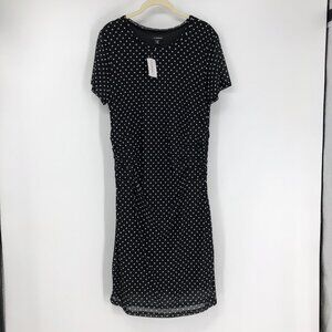 Le Chateau Black white Polka Dot short sleeve ruched NWT Dress Size XL