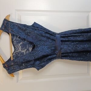 Le Chateau Blue Sequin Soutache & Lace Dress Sz L