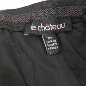 le chateau Strapless Sweetheart Neckline A-Line Mini Dress Size Small Zippered Back Stretch Black Rose Lace Layover Lined