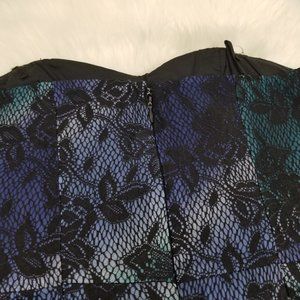 Le Chateau Blue Teal Strapless Sweetheart Black Lace Pockets Dress Cocktail S